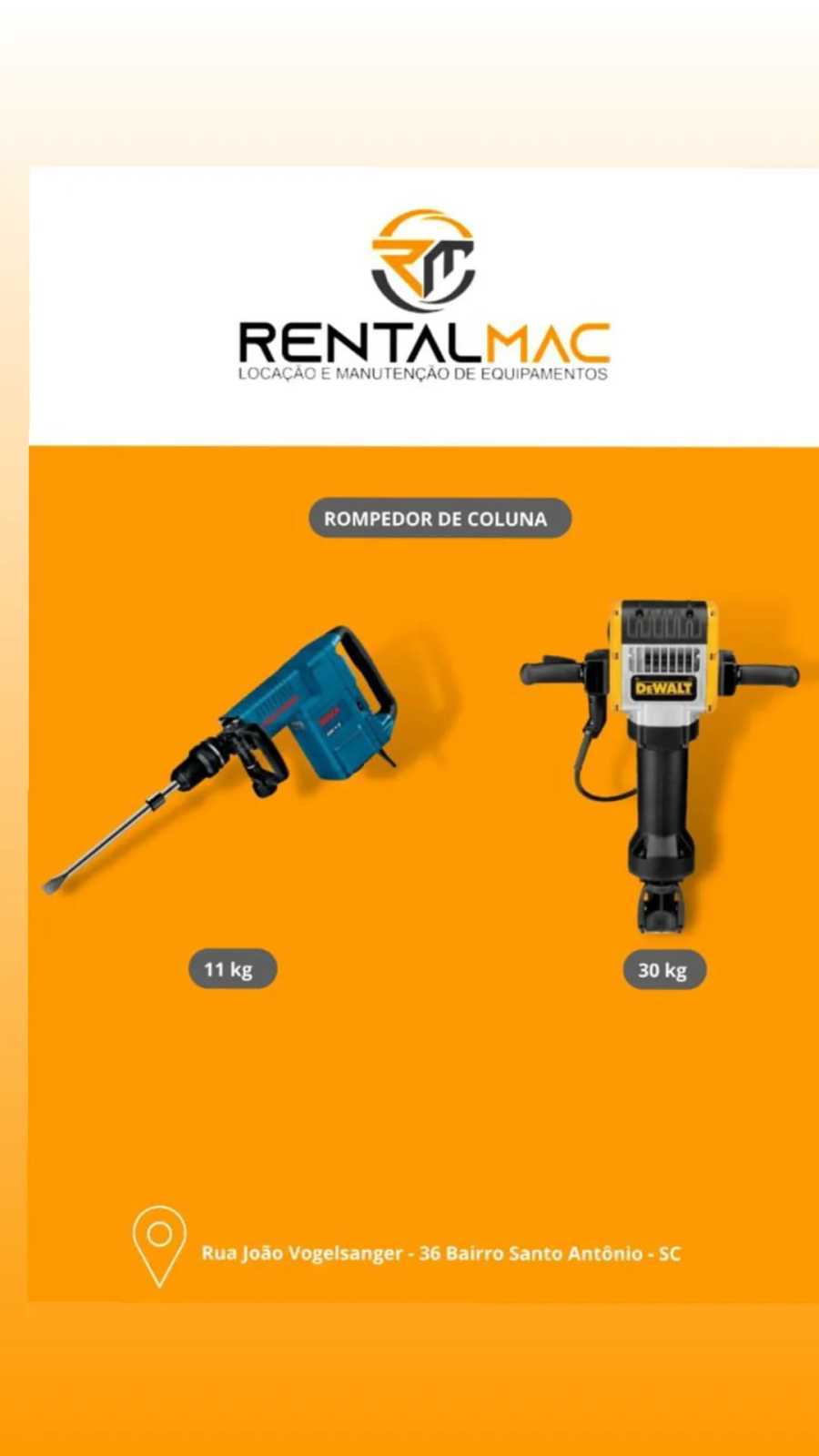 Na Rentalmac, oferecemos locação com condições flexíveis, suporte técnico especializado e entrega rápida em Joinville e região, garantindo que sua obra tenha o equipamento certo no momento certo.